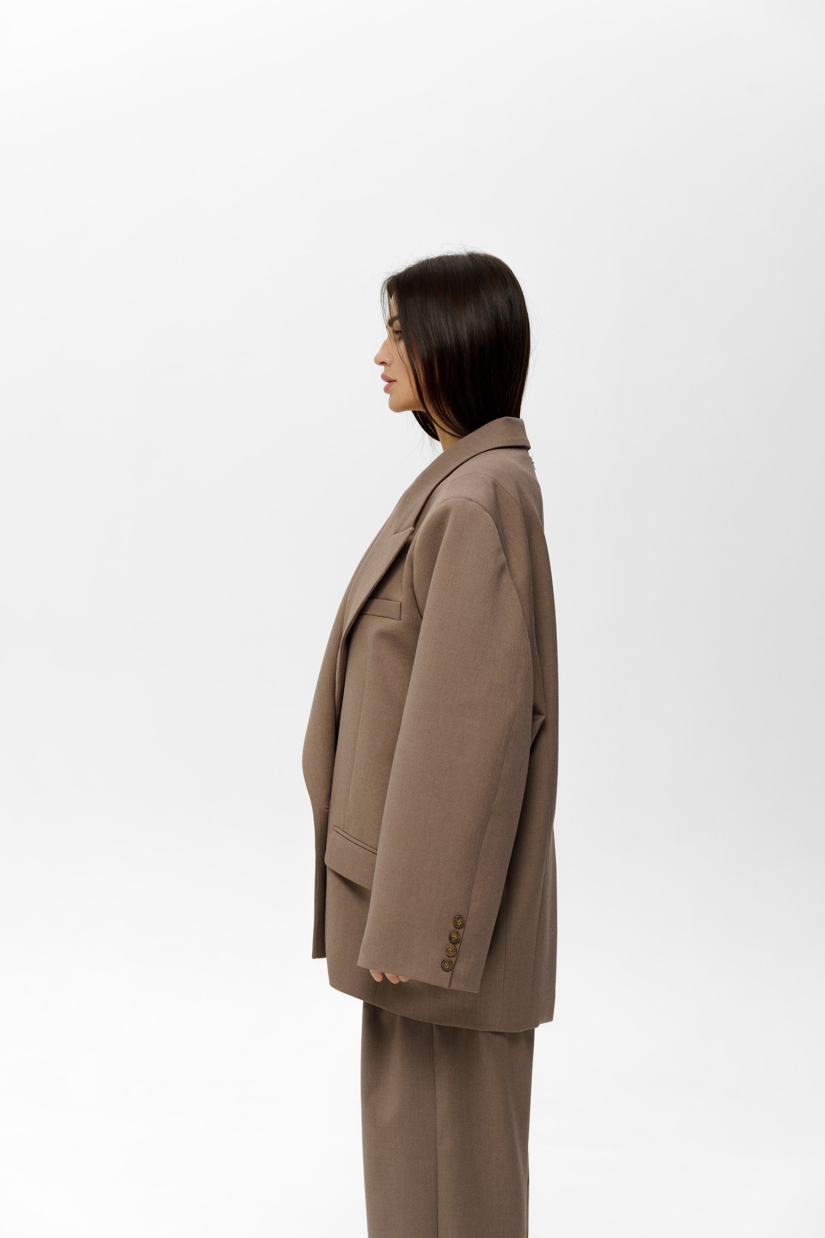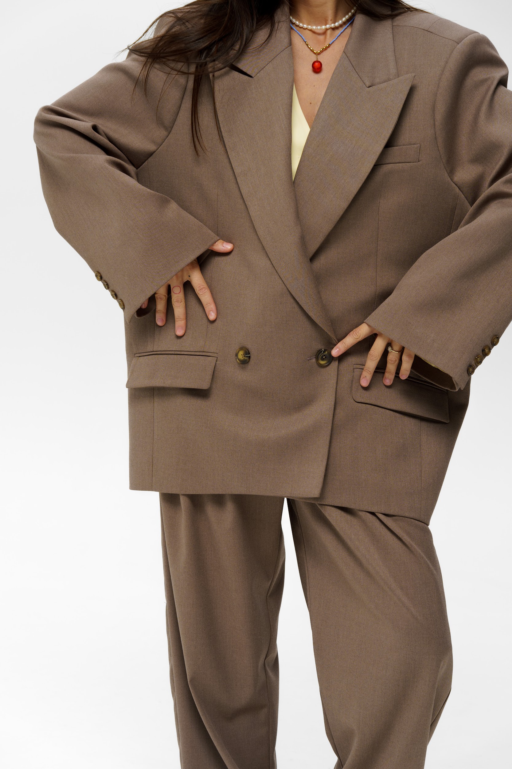 Двубортный унисекс гипероверсайз или в стиле пауэрвумен пиджак\жакет с усиленной линией плеча. На текстуре ткани выделяются роговые пуговицы, характеризующие двубортный мужской фасон, карманы с клапаном и нагрудный кармашек в традиционном стиле, внутренний карман, с глубокой шлицей сзади. Параметры модели: … В этом изделии Мы по-новому интерпретируем неповторимость канонов классического стиля, элегантным индивидуальным стилем. Верь в себя – BE SOCOOL!